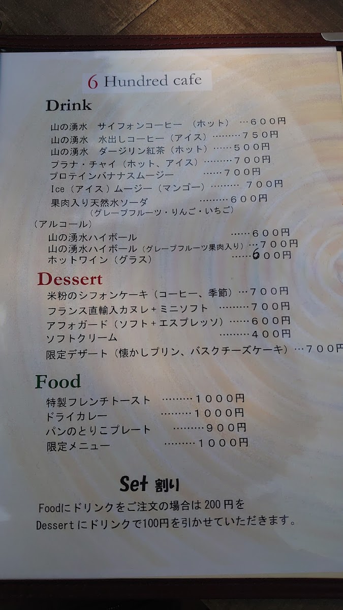 6 HUNDRED CAFE Menu